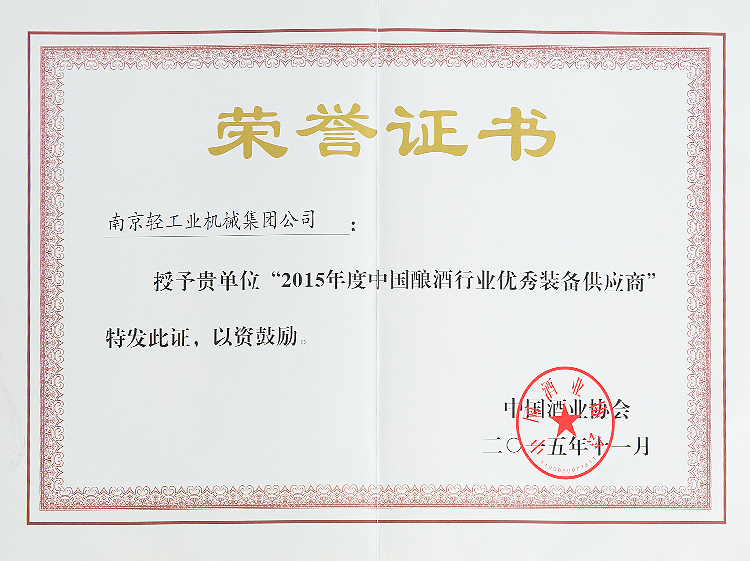 • 2015年釀酒行業(yè)優(yōu)秀設(shè)備供應(yīng)商2015年釀酒行業(yè)優(yōu)秀設(shè)備供應(yīng)商