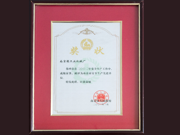 • 南京市2002年安全生產(chǎn)先進(jìn)單位南京市2002年安全生產(chǎn)先進(jìn)單位