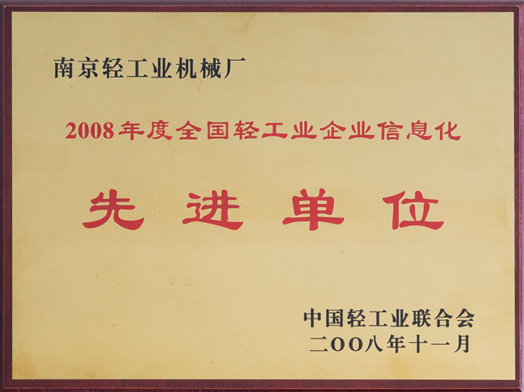• 2008年全國輕工企業(yè)信息化先進(jìn)單位2008年全國輕工企業(yè)信息化先進(jìn)單位