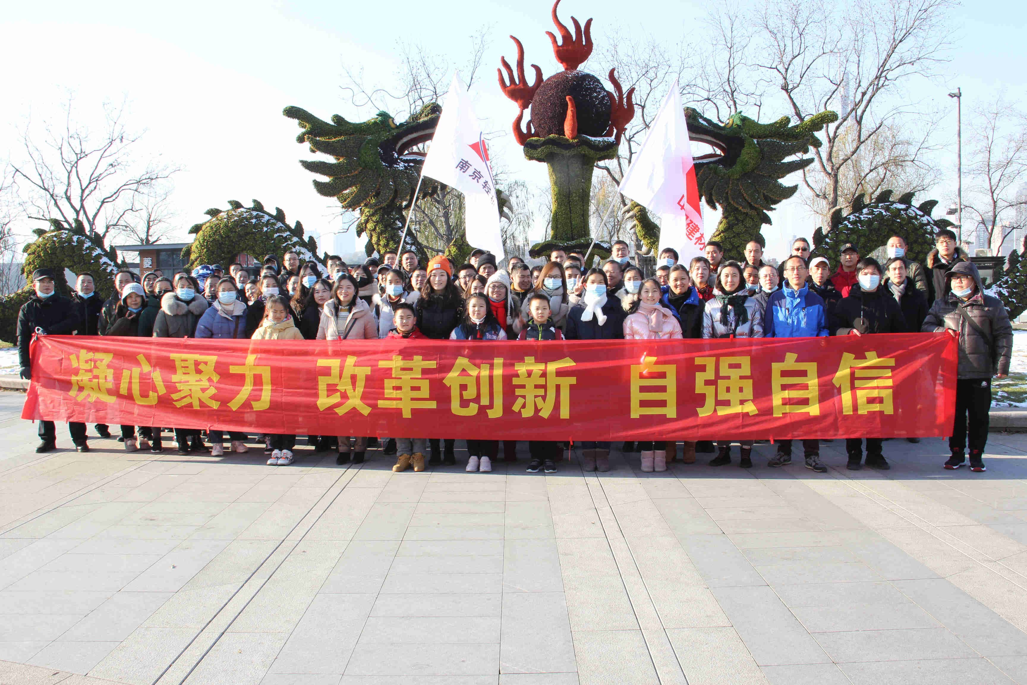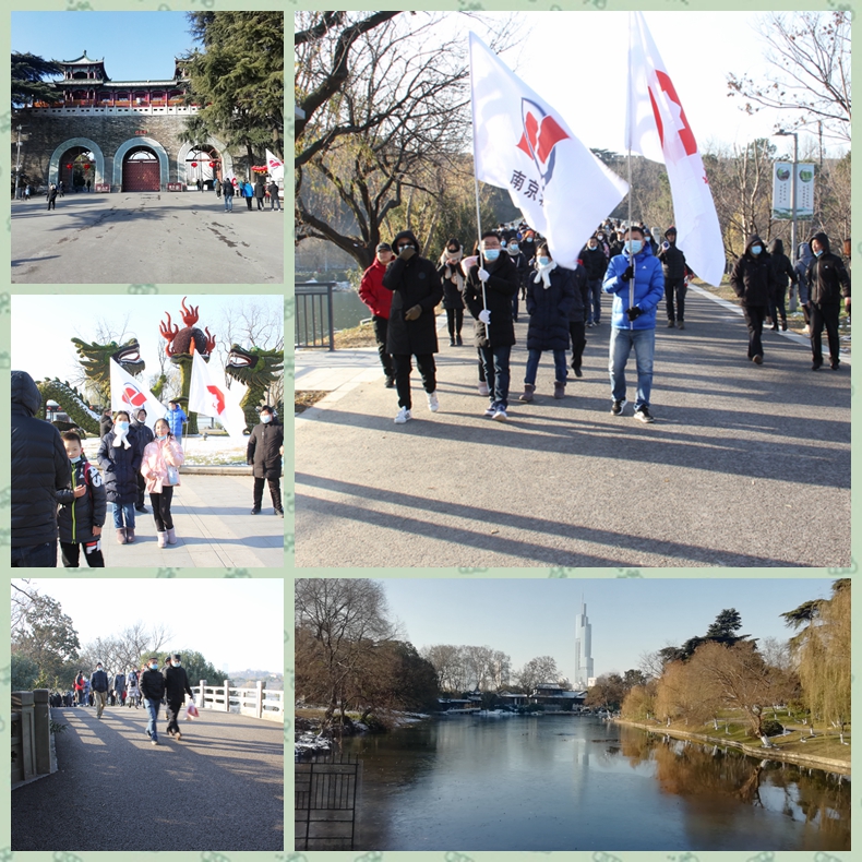 清晨的陽光格外明媚,冬日的寒意抵擋不住大家的熱情。我們的隊伍從解放門出發(fā),沿湖岸,浩浩蕩蕩,一路前行。“中國建材"和"南京輕機(jī)"兩面旗幟,迎風(fēng)招展,獵獵飄揚(yáng)。一路上,老夫少年,你追我趕、左顧右盼、談笑風(fēng)生,時而相互加油,時而頷首低語、時而闊闊暢談,隊伍中不時地傳來爽朗的笑聲,成為玄武湖畔一道靚麗的風(fēng)景線。