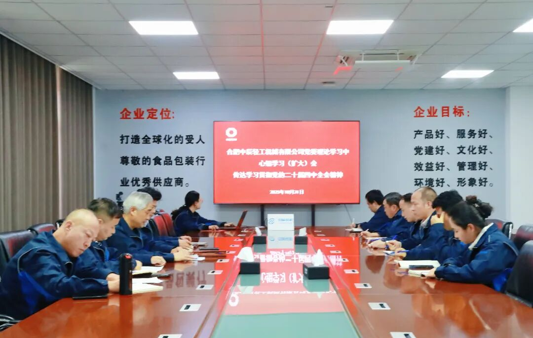 中辰輕機(jī)黨委召開黨委理論學(xué)習(xí)中心組(擴(kuò)大)學(xué)習(xí)會(huì),專題傳達(dá)學(xué)習(xí)黨的二十屆四中全會(huì)精神,并進(jìn)行交流研討,研究部署學(xué)習(xí)宣貫工作。會(huì)議要求,把學(xué)習(xí)領(lǐng)會(huì)全會(huì)精神同深入學(xué)習(xí)貫徹黨的二十大和二十屆二中、三中全會(huì)精神,同打造全球化的受人尊敬的食品包裝行業(yè)優(yōu)秀供應(yīng)商的企業(yè)定位結(jié)合起來(lái),以科技創(chuàng)新賦能產(chǎn)業(yè)升級(jí),以高質(zhì)量發(fā)展引領(lǐng)轉(zhuǎn)型突破,真正做到學(xué)深悟透、融會(huì)貫通,以全會(huì)精神進(jìn)一步統(tǒng)一思想、凝聚共識(shí),激發(fā)廣大干部職工干事創(chuàng)業(yè)的熱情,為實(shí)現(xiàn)“十四五”圓滿收官和“十五五”良好開局打牢堅(jiān)實(shí)基礎(chǔ)。