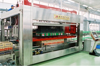 c)Bottle/case infeed & outfeed, collation, bottle unloading, and safety protection all controlled by PLC to realize fully automatic operation.