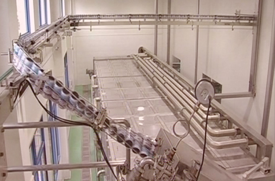 Empty can conveyor (wire cable conveyor or plastic tabletop chain conveyor)